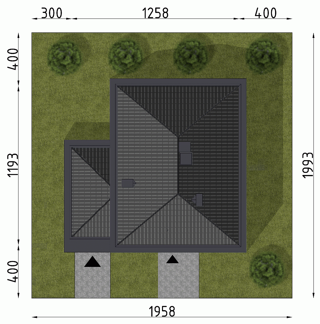 - Minimalne wymiary działki19.93 x 19.58m
