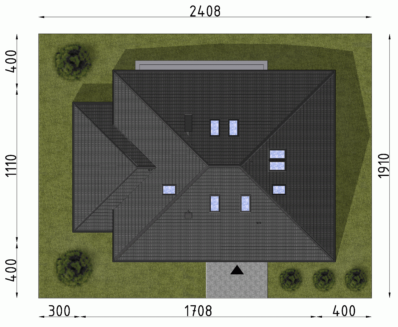 - rzut dachu – wymiary dachu, kąt nachylenia wszystkich połaci dachu, rozmieszczenie okien połaciowych, lukarn, kominów.