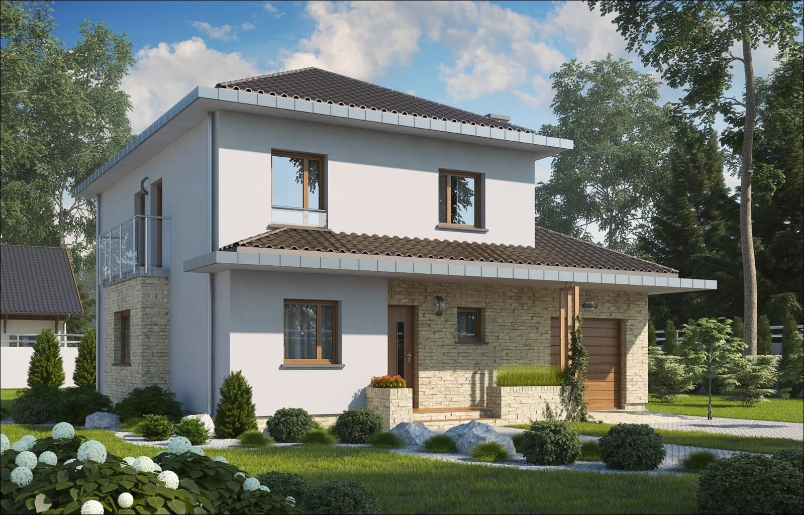 Dom D133 jest odpowiedzią na potrzeby naszych klientów, szukających nowoczesnej willi miejskiej z garażem. Prosta, czysta bryła oraz harmonijny podział w elewacjach czynią ten dom klasycznie eleganckim. Podstawowym założeniem przyjętym przy projekcie budynku było harmonijne wpisanie się w miejski krajobraz. Jest to budynek piętrowy kryty kopertowym dachem. W elewacji budynku poprzez materiał zaakcentowano wyraźnie, strefę wejściową. W bryle budynku oddzielono także funkcję mieszkalną dzienną od nocnej, jak również strefę mieszkalną od garażu i strefy gospodarczej.Konstrukcja