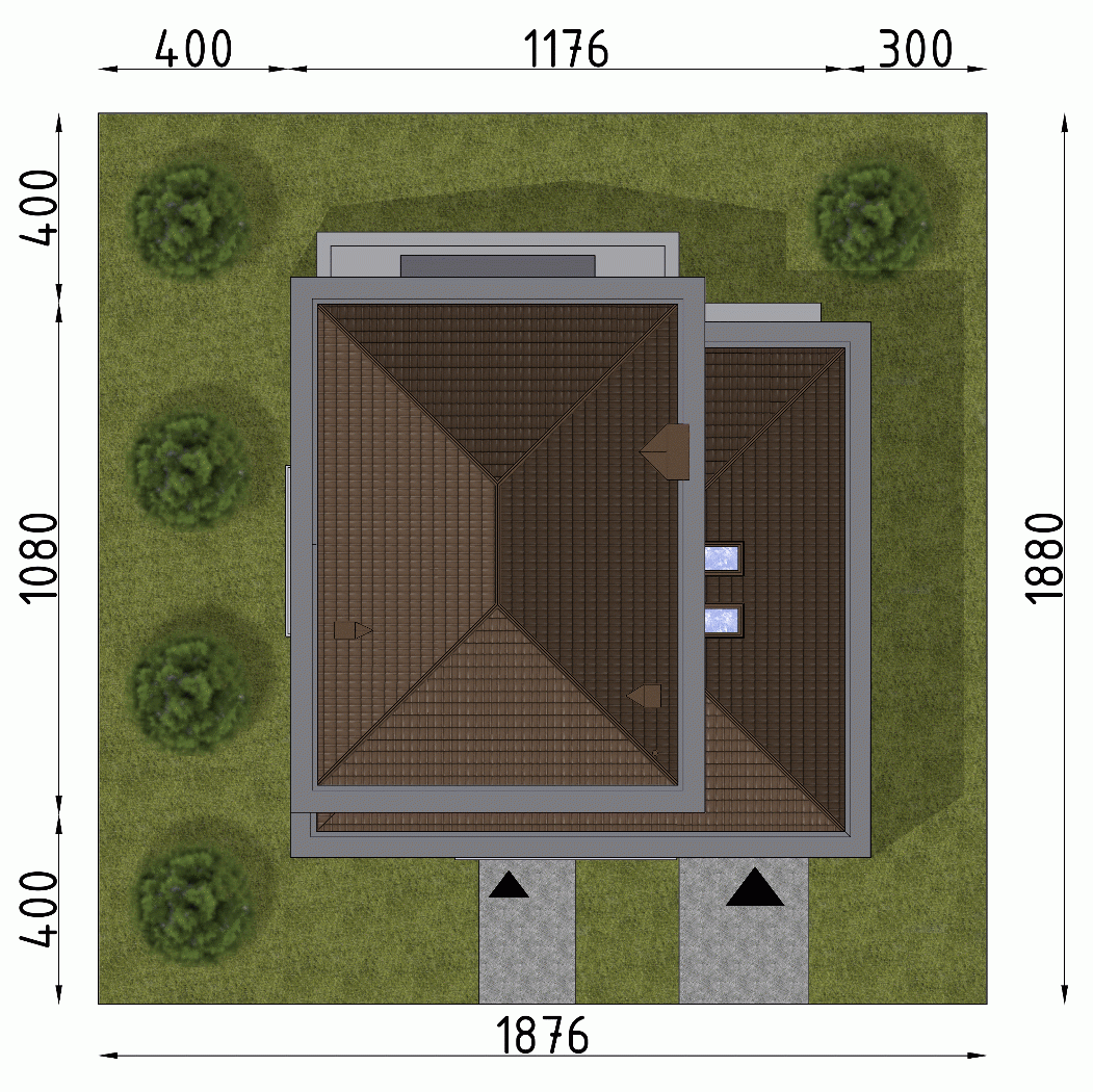 - elewacje (frontowa, dwie elewacje boczne, ogrodowa) – dokładny wygląd domu z każdej strony.