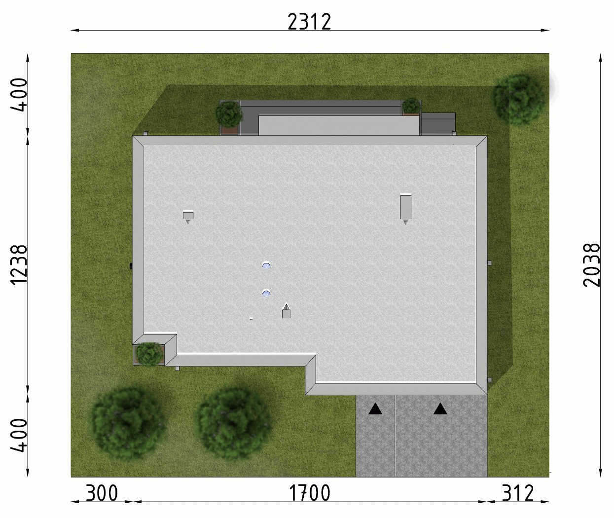 - Minimalne wymiary działki20.38 x 23.12m