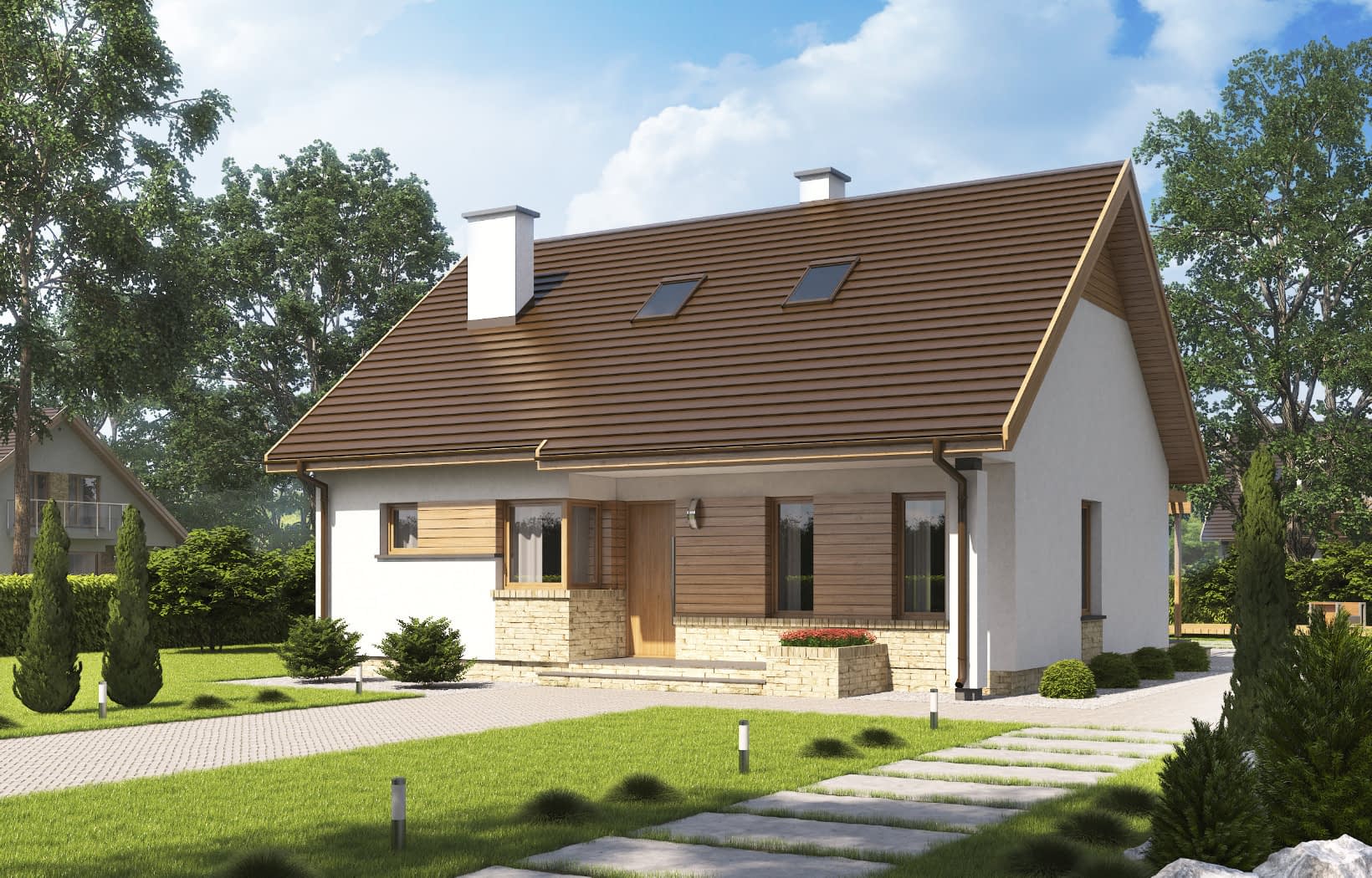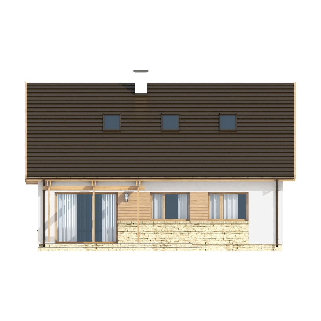 - elewacje (frontowa, dwie elewacje boczne, ogrodowa) – dokładny wygląd domu z każdej strony.