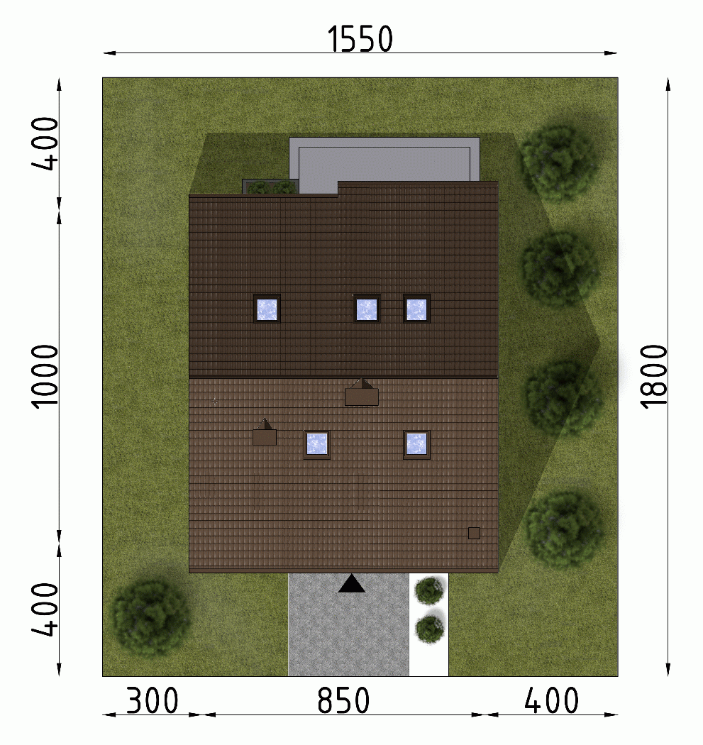 - rzut dachu – wymiary dachu, kąt nachylenia wszystkich połaci dachu, rozmieszczenie okien połaciowych, lukarn, kominów.