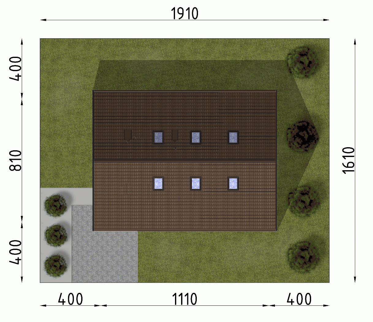 - elewacje (frontowa, dwie elewacje boczne, ogrodowa) – dokładny wygląd domu z każdej strony.