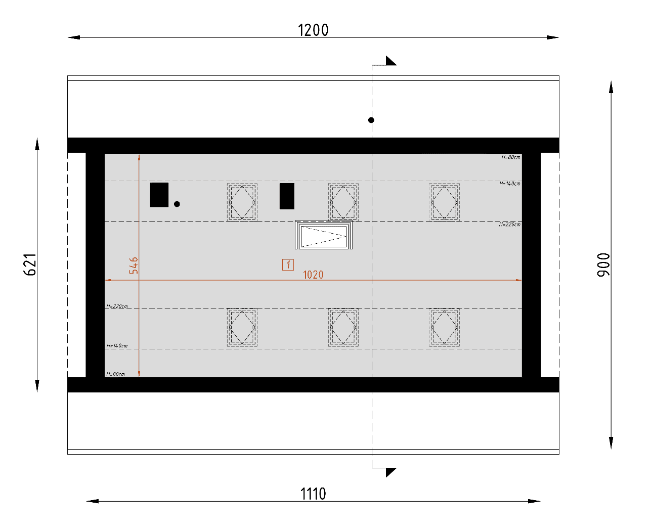 - rzut fundamentów – dokładne rozmieszczenie fundamentów, wymiary ław fundamentowych i głębokość ich posadowienia.