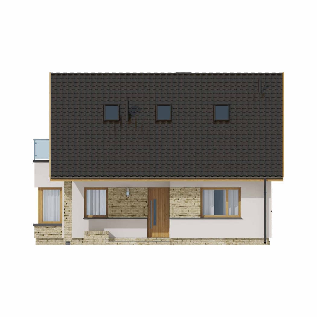 - elewacje (frontowa, dwie elewacje boczne, ogrodowa) – dokładny wygląd domu z każdej strony.