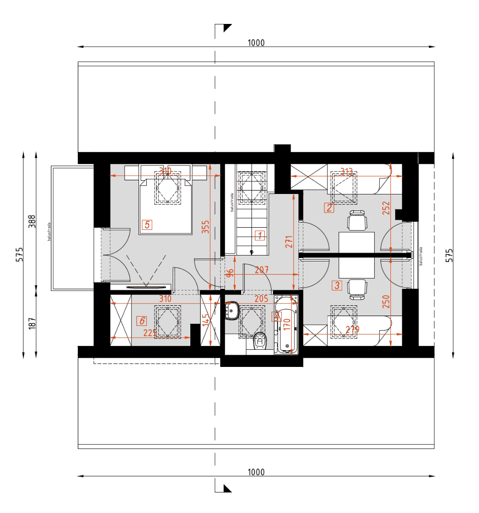 - rzuty wszystkich kondygnacji (np. parter, piwnica, piętro) – rozmieszczenie i wymiary wszystkich pomieszczeń, rozmieszczenie i wielkość otworów okiennych i drzwiowych, rozmieszczenie kominów, sugerowana aranżacja wnętrz.