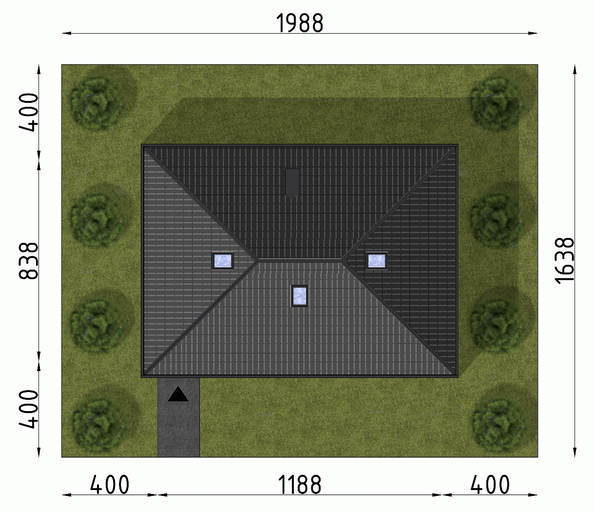 - rzut dachu – wymiary dachu, kąt nachylenia wszystkich połaci dachu, rozmieszczenie okien połaciowych, lukarn, kominów.