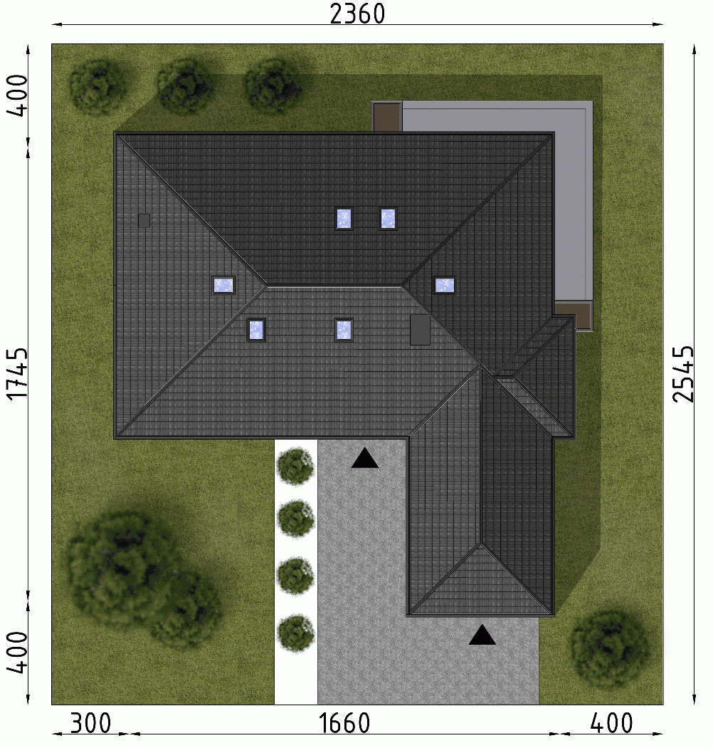 - Minimalne wymiary działki25.45 x 23.6m