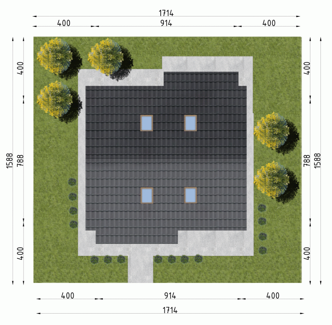 - Minimalne wymiary działki15.88 x 17.14m