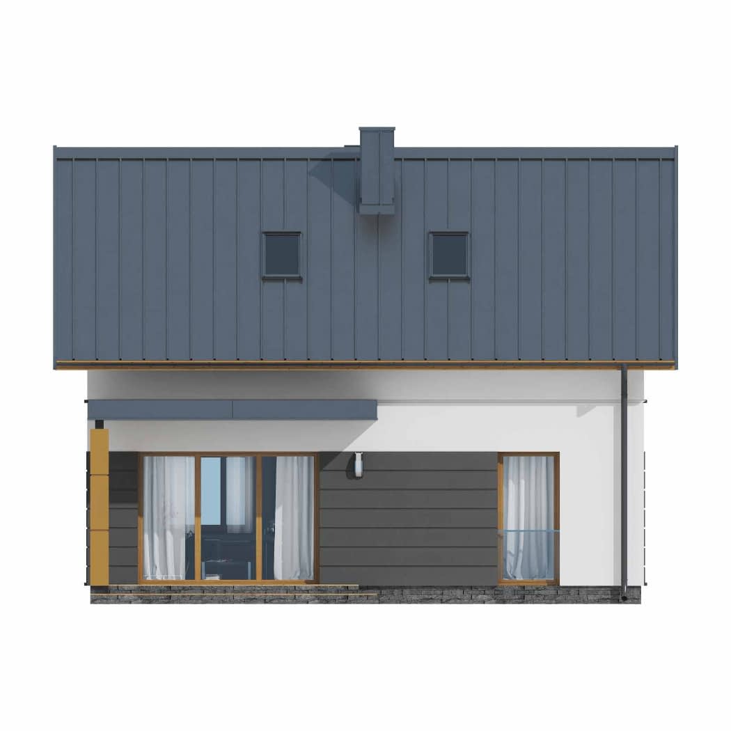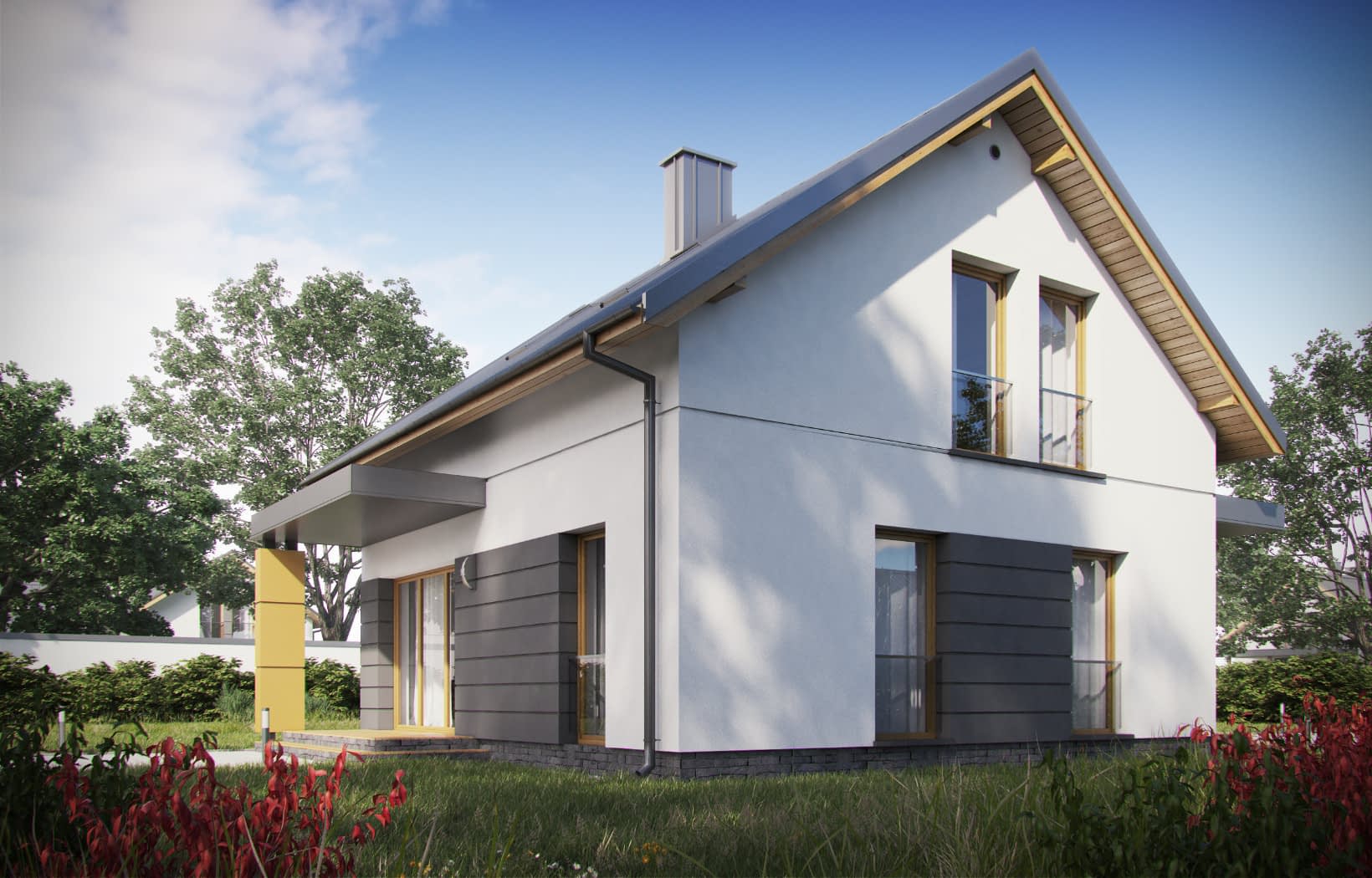 Dom mieszkalny jednorodzinny w technologii tradycyjnej. Idealny dla 4-5-osobowej rodziny.Może również pełnić funkcję domku letniskowego. Prosta bryła budynku oraz nieskomplikowana konstrukcja wpływają na niższe koszty budowy. Bardzo funkcjonalny podział pomieszczeń z oddzielną strefą techniczną, strefą dzienną na parterze i nocną na poddaszu.Konstrukcja