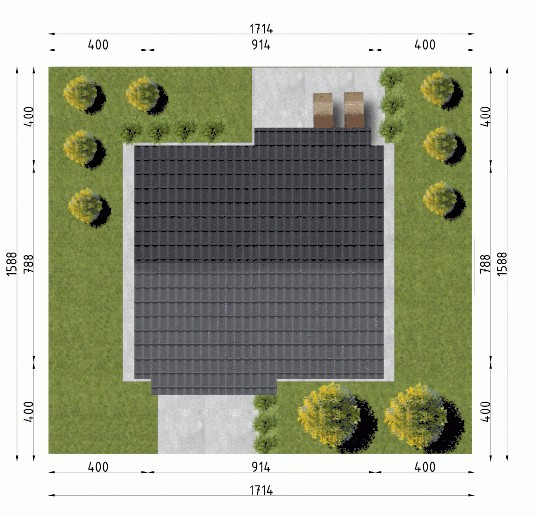 - rzut dachu – wymiary dachu, kąt nachylenia wszystkich połaci dachu, rozmieszczenie okien połaciowych, lukarn, kominów.