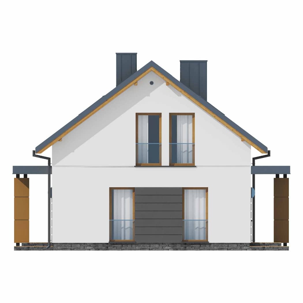 - elewacje (frontowa, dwie elewacje boczne, ogrodowa) – dokładny wygląd domu z każdej strony.