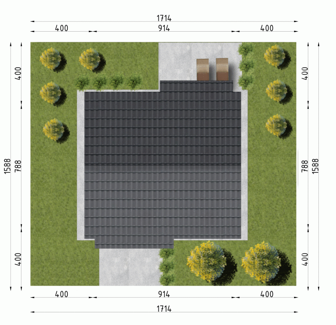 - Minimalne wymiary działki15.88 x 17.14m