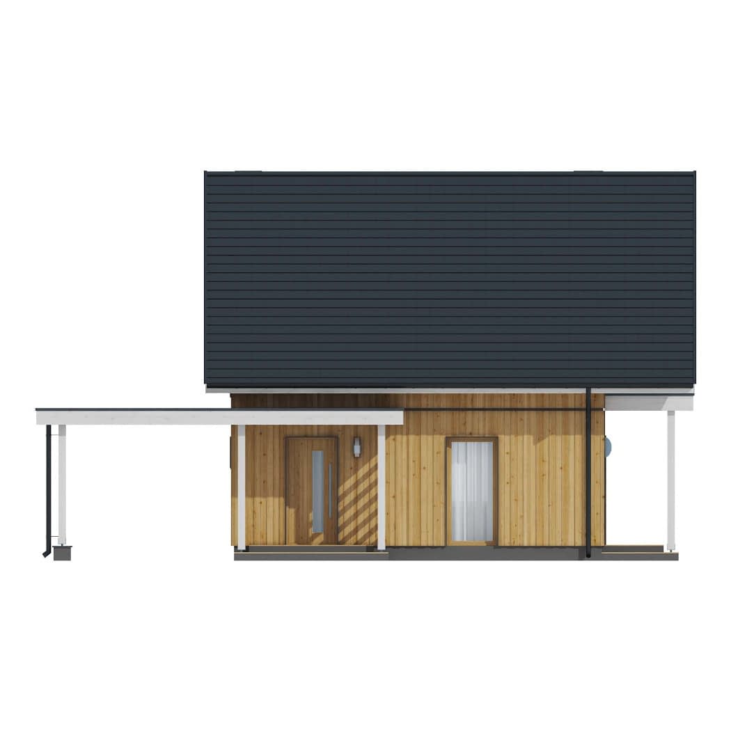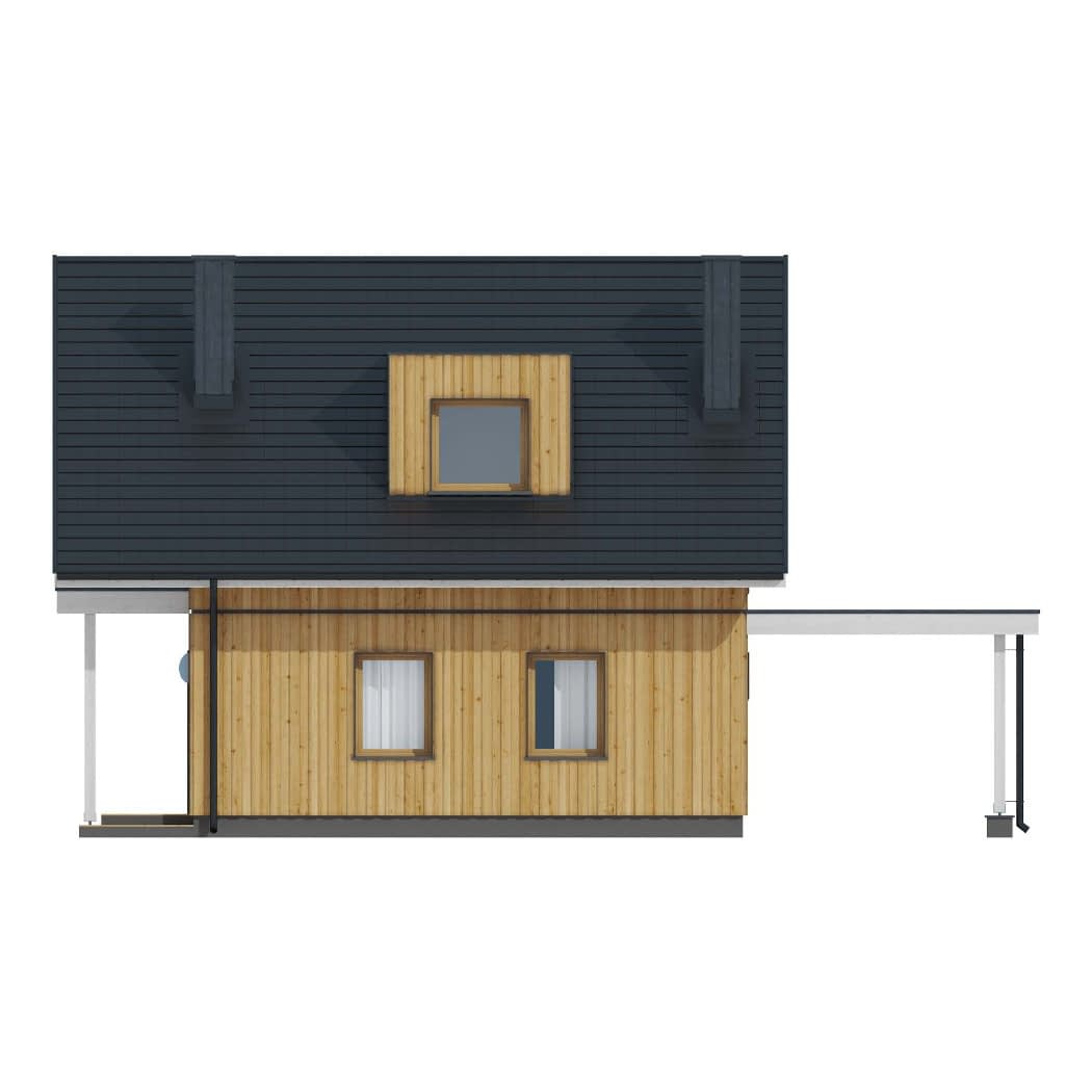 Dom mieszkalny jednorodzinny w technologii tradycyjnej. Idealny dla 4-5-osobowej rodziny. Może również pełnić funkcję domku letniskowego. Prosta bryła budynku oraz nieskomplikowana konstrukcja wpływają na niższe koszty budowy. Miejsce parkingowe w postaci wiaty, zaprojektowano obok budynku. Bardzo funkcjonalny podział pomieszczeń z oddzielną strefą techniczną, strefą dzienną na parterze i nocną na poddaszu.Konstrukcja