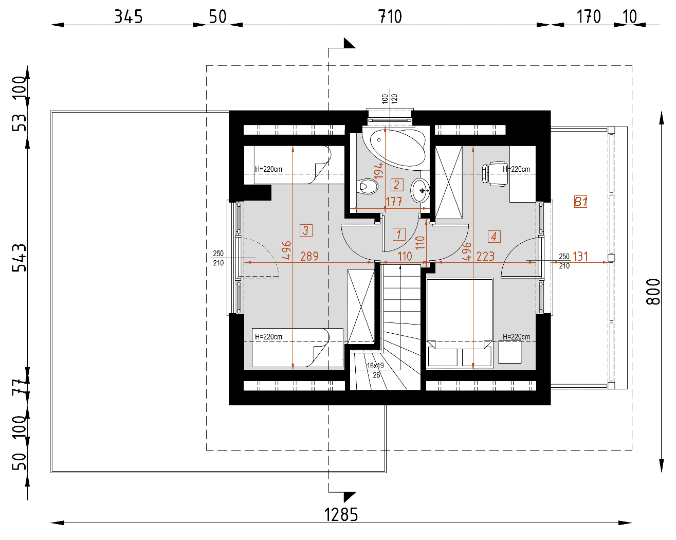 - rzuty wszystkich kondygnacji (np. parter, piwnica, piętro) – rozmieszczenie i wymiary wszystkich pomieszczeń, rozmieszczenie i wielkość otworów okiennych i drzwiowych, rozmieszczenie kominów, sugerowana aranżacja wnętrz.