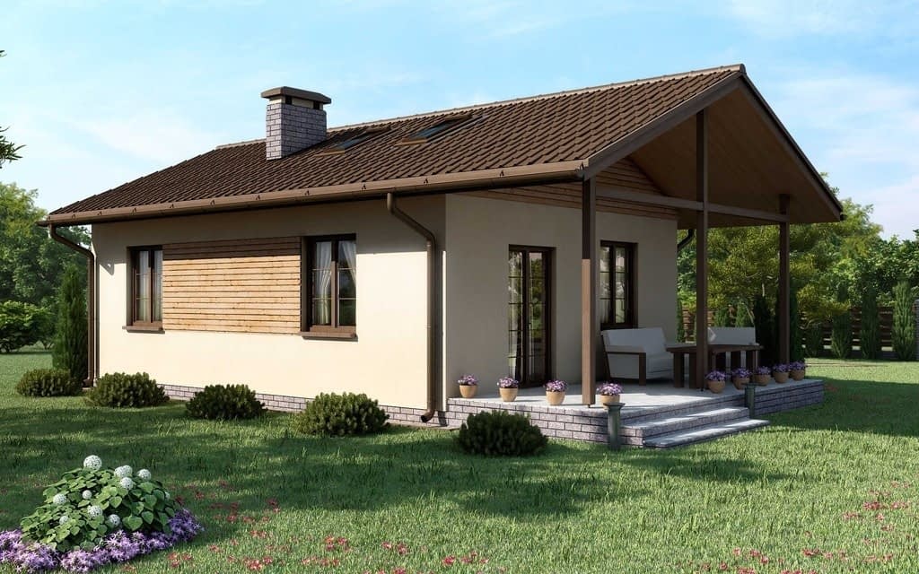 Elewacja: tynk cienkowarstwowy, na fragmentach ścian deski i płytki klinkierowe