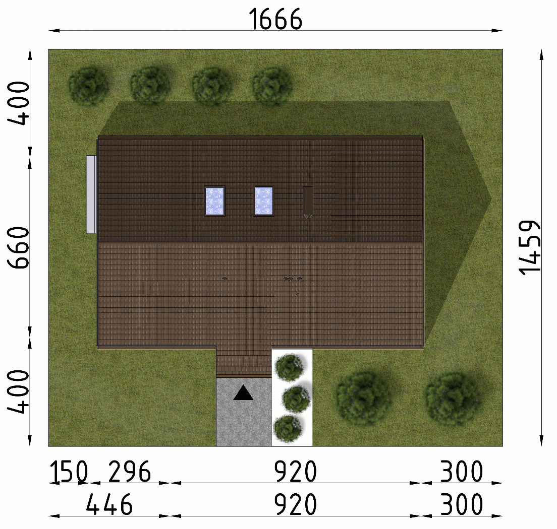 - Minimalne wymiary działki14.59 x 16.66m
