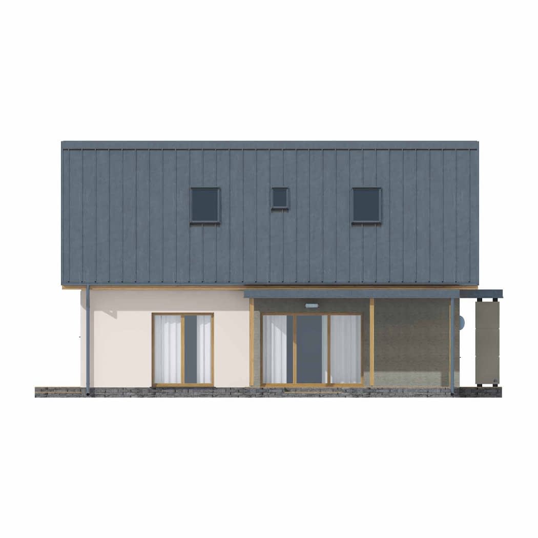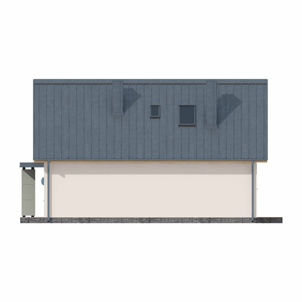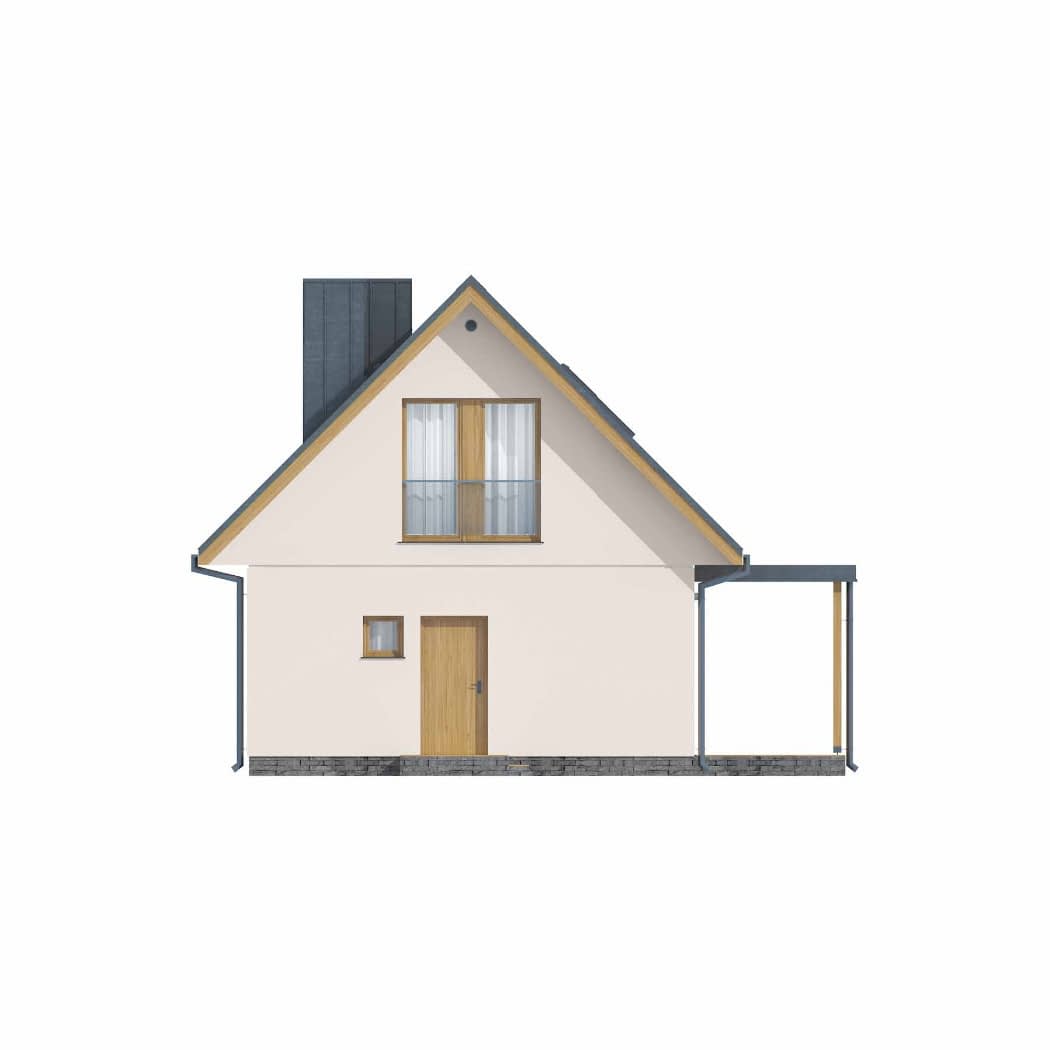 Dom mieszkalny jednorodzinny wolnostojący, parterowy z poddaszem użytkowym. Parter składa się z pokoju dziennego połączonego z kuchnią, łazienki, pokoju sypialnego oraz pomieszczenia technicznego dostępnego z drugiej strony domu. Na poddaszu znajdują się 3 pokoje. Budynek idealny na wąską działkę.Konstrukcja