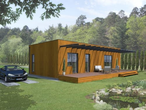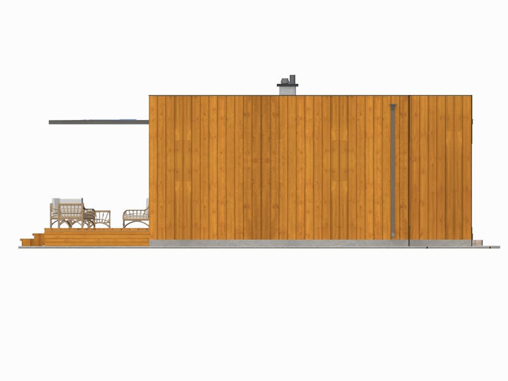 Parterowy dom w nowoczesnym stylu. Prosty i funkcjonalny, przeznaczony dla młodej rodziny z dzieckiem albo na jesień życia, może też pełnić rolę wygodnego domu letniego. Budynek w konstrukcji lekkiej szkieletowej ( w technologii szkieletu kanadyjskiego). Parter składa się z pokoju dziennego (z kominkiem i wyjściem do ogrodu poprzez taras), dwóch pokoi sypialnych, kuchni, łazienki, korytarza oraz przedsionka.Konstrukcja