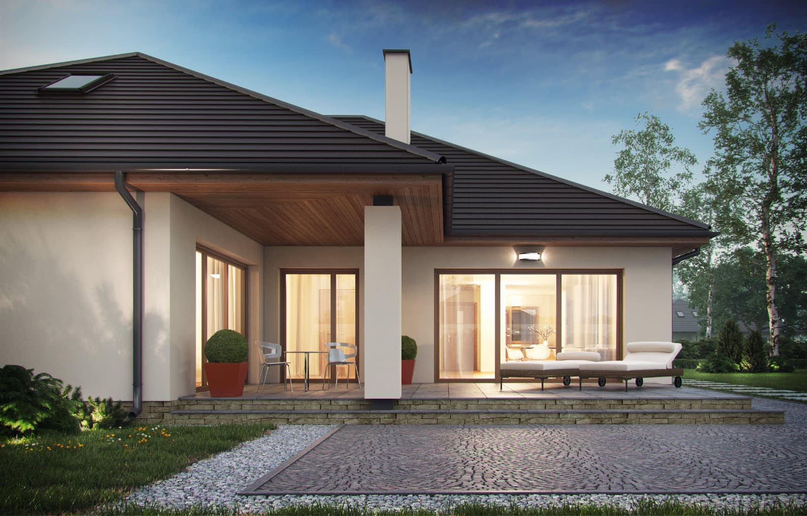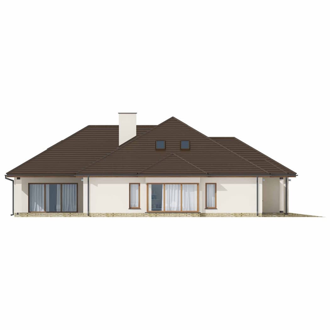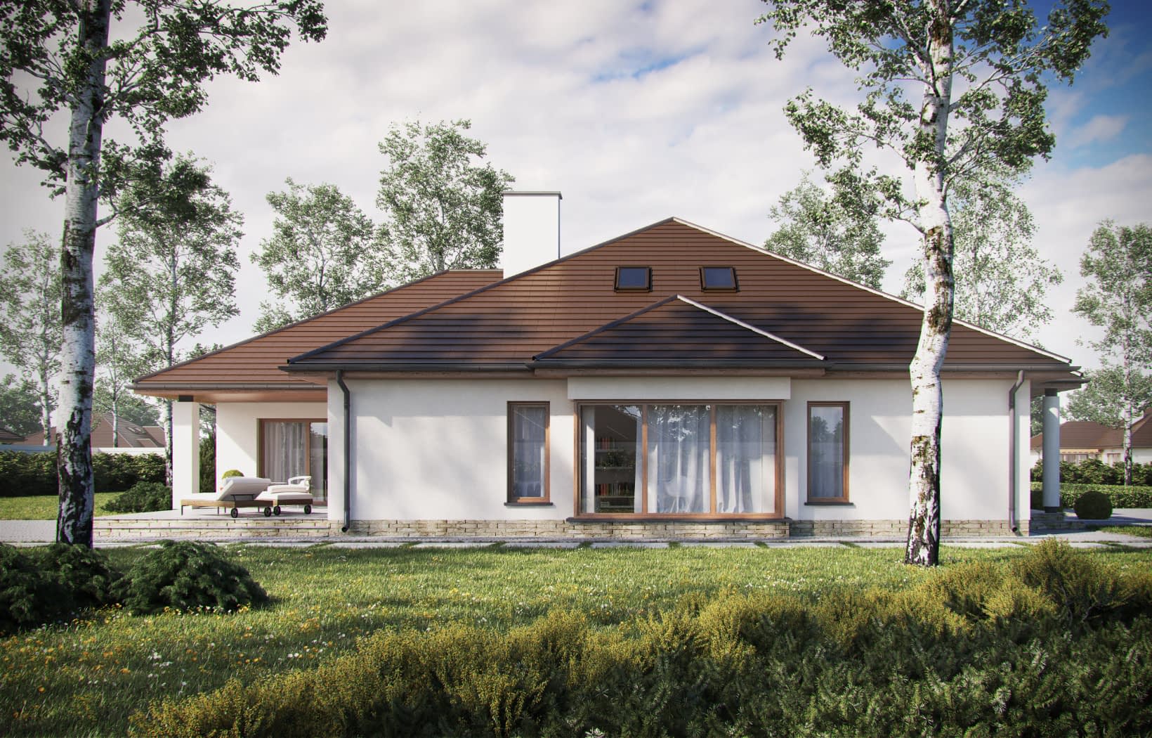 - elewacje (frontowa, dwie elewacje boczne, ogrodowa) – dokładny wygląd domu z każdej strony.