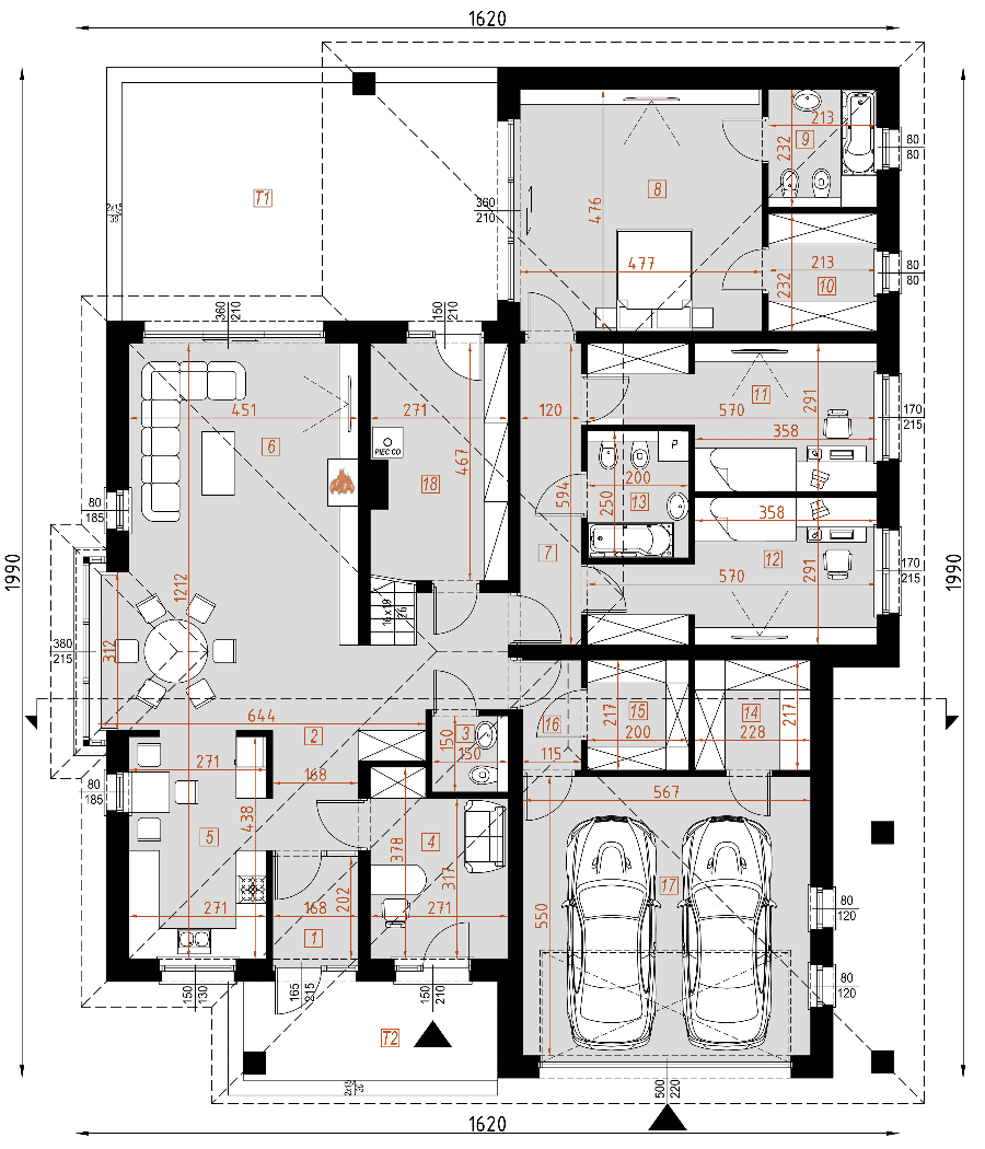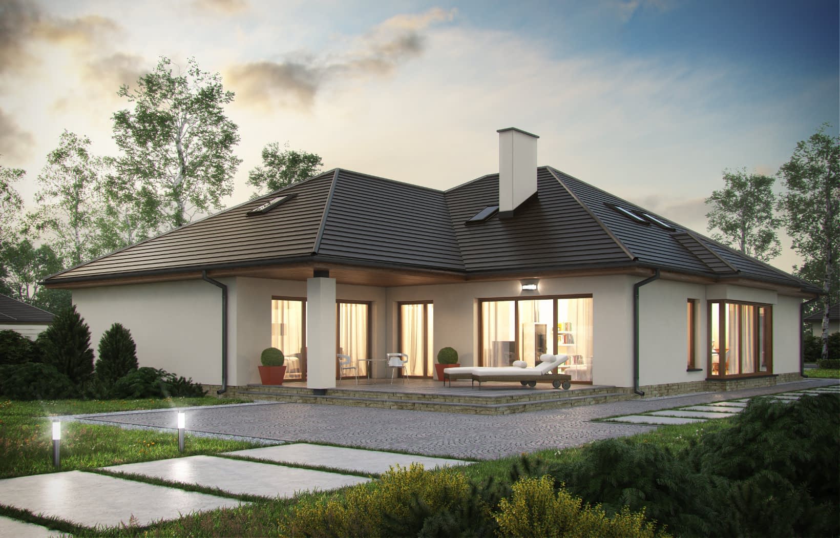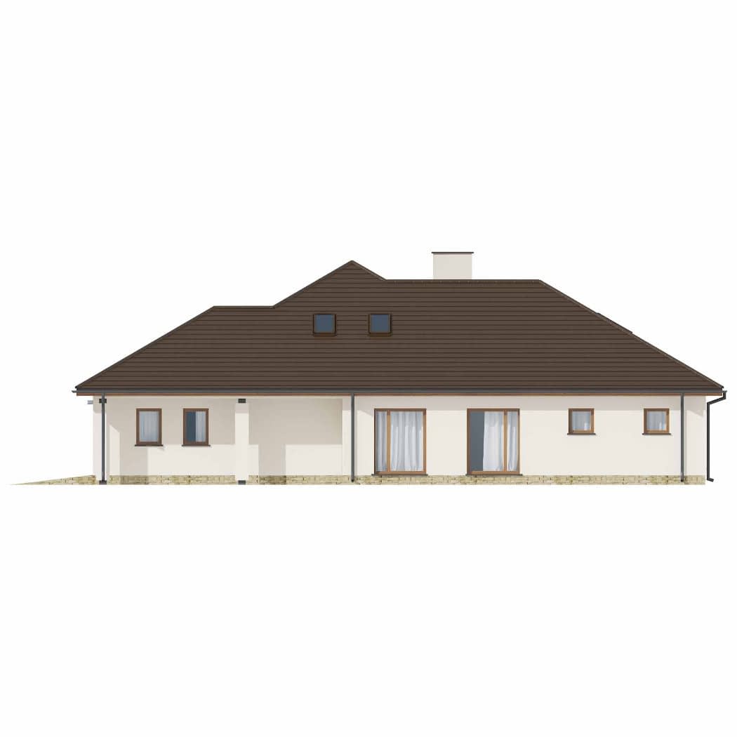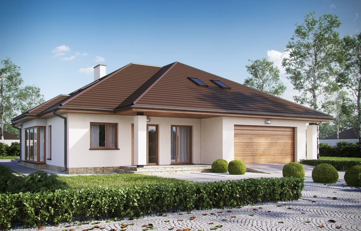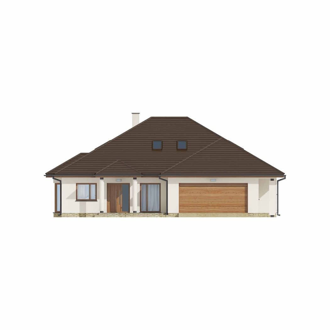 Dom mieszkalny jednorodzinny parterowy z poddaszem do adaptacji i garażem dwustanowiskowym. Idealny dla 4-5-osobowej rodziny. Prosta bryła budynku oraz nieskomplikowana konstrukcja wpływają na niższe koszty budowy. Bardzo funkcjonalny podział pomieszczeń z oddzielną strefą techniczną, strefą dzienną i nocną. Atutem tego projektu jest również nowoczesny wygląd elewacji.Konstrukcja