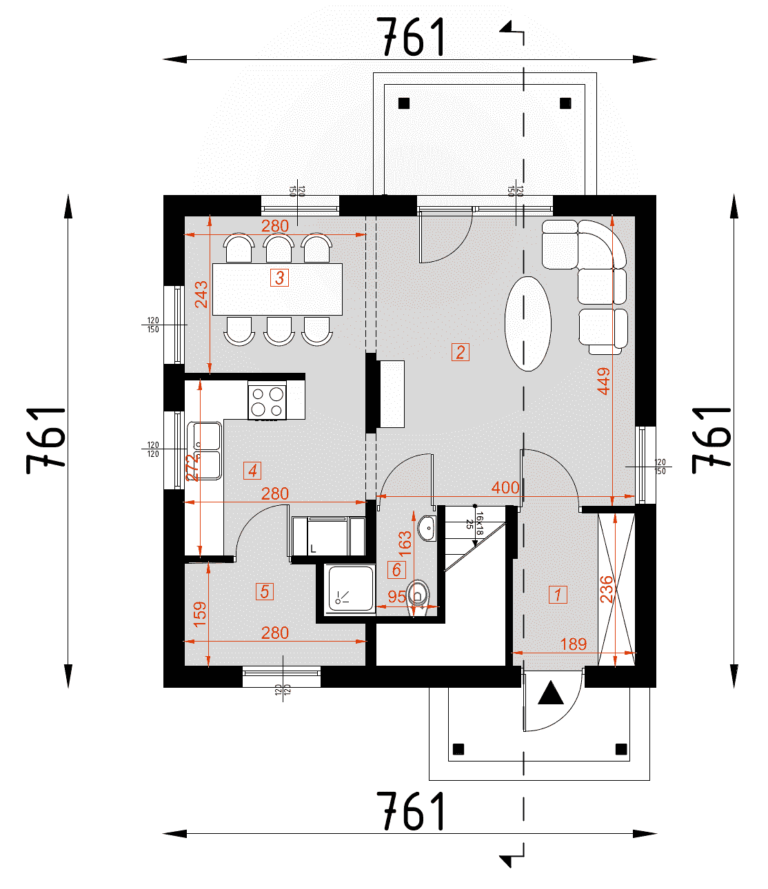 - rzuty wszystkich kondygnacji (np. parter, piwnica, piętro) – rozmieszczenie i wymiary wszystkich pomieszczeń, rozmieszczenie i wielkość otworów okiennych i drzwiowych, rozmieszczenie kominów, sugerowana aranżacja wnętrz.