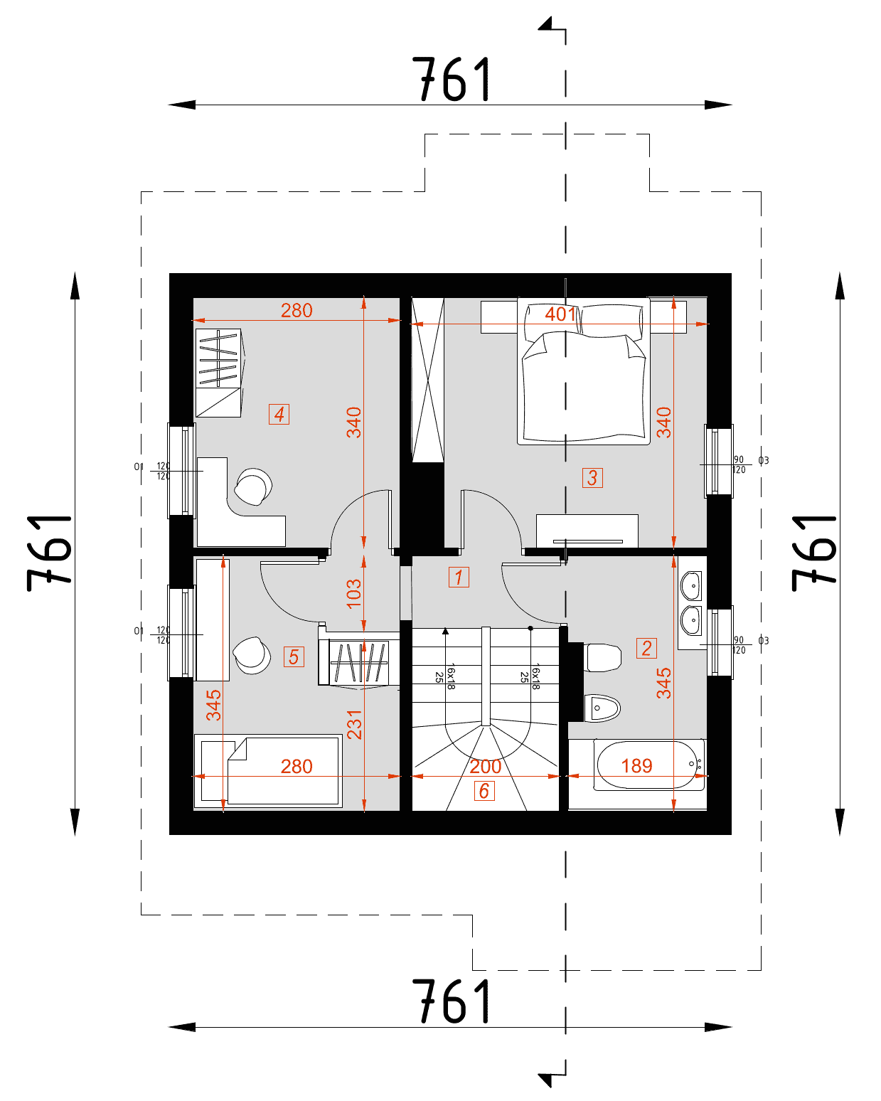 - rzut fundamentów – dokładne rozmieszczenie fundamentów, wymiary ław fundamentowych i głębokość ich posadowienia.
