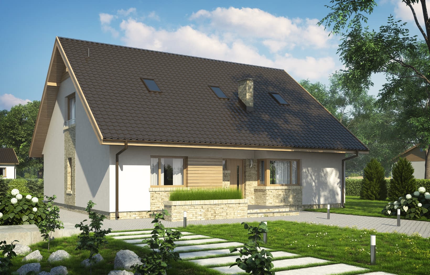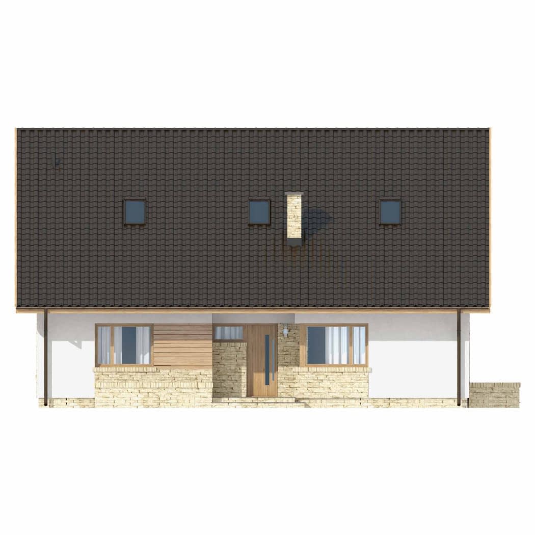 - elewacje (frontowa, dwie elewacje boczne, ogrodowa) – dokładny wygląd domu z każdej strony.