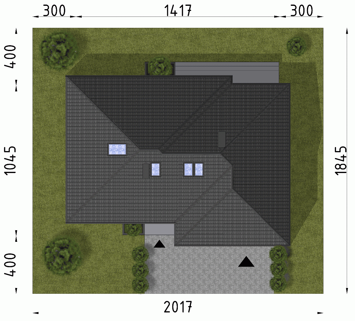 - rzut dachu – wymiary dachu, kąt nachylenia wszystkich połaci dachu, rozmieszczenie okien połaciowych, lukarn, kominów.