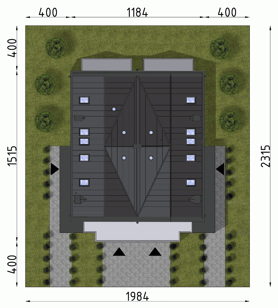 - elewacje (frontowa, dwie elewacje boczne, ogrodowa) – dokładny wygląd domu z każdej strony.