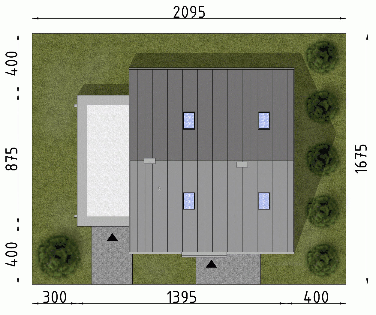 - elewacje (frontowa, dwie elewacje boczne, ogrodowa) – dokładny wygląd domu z każdej strony.