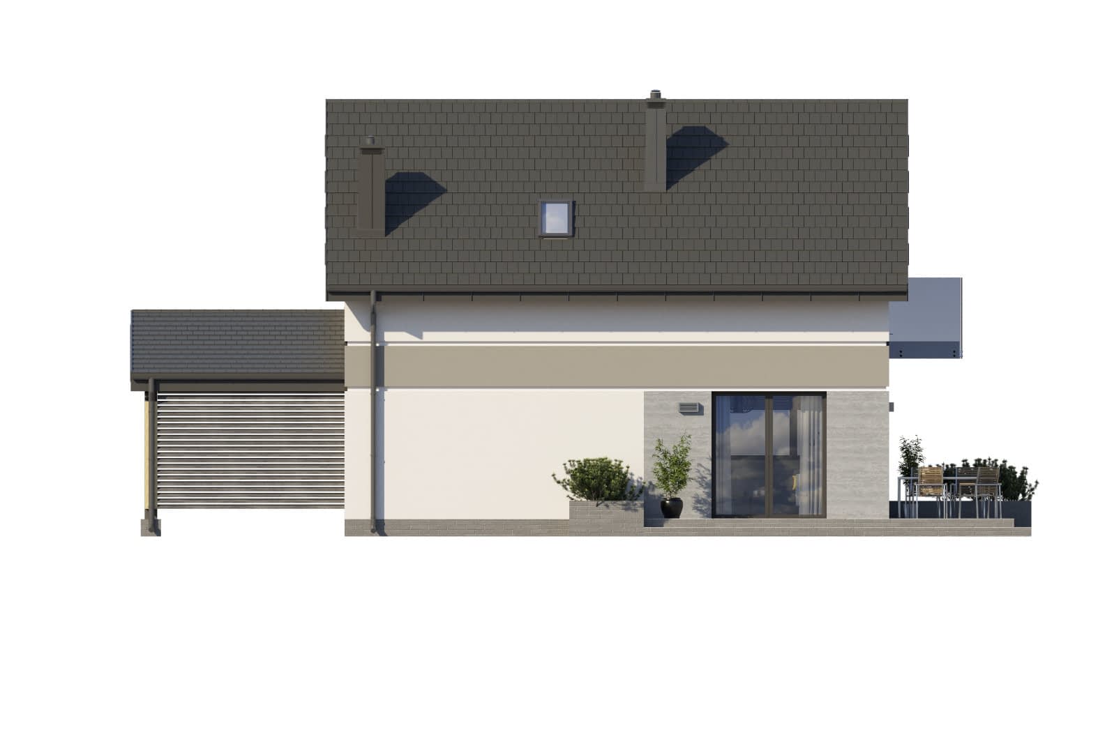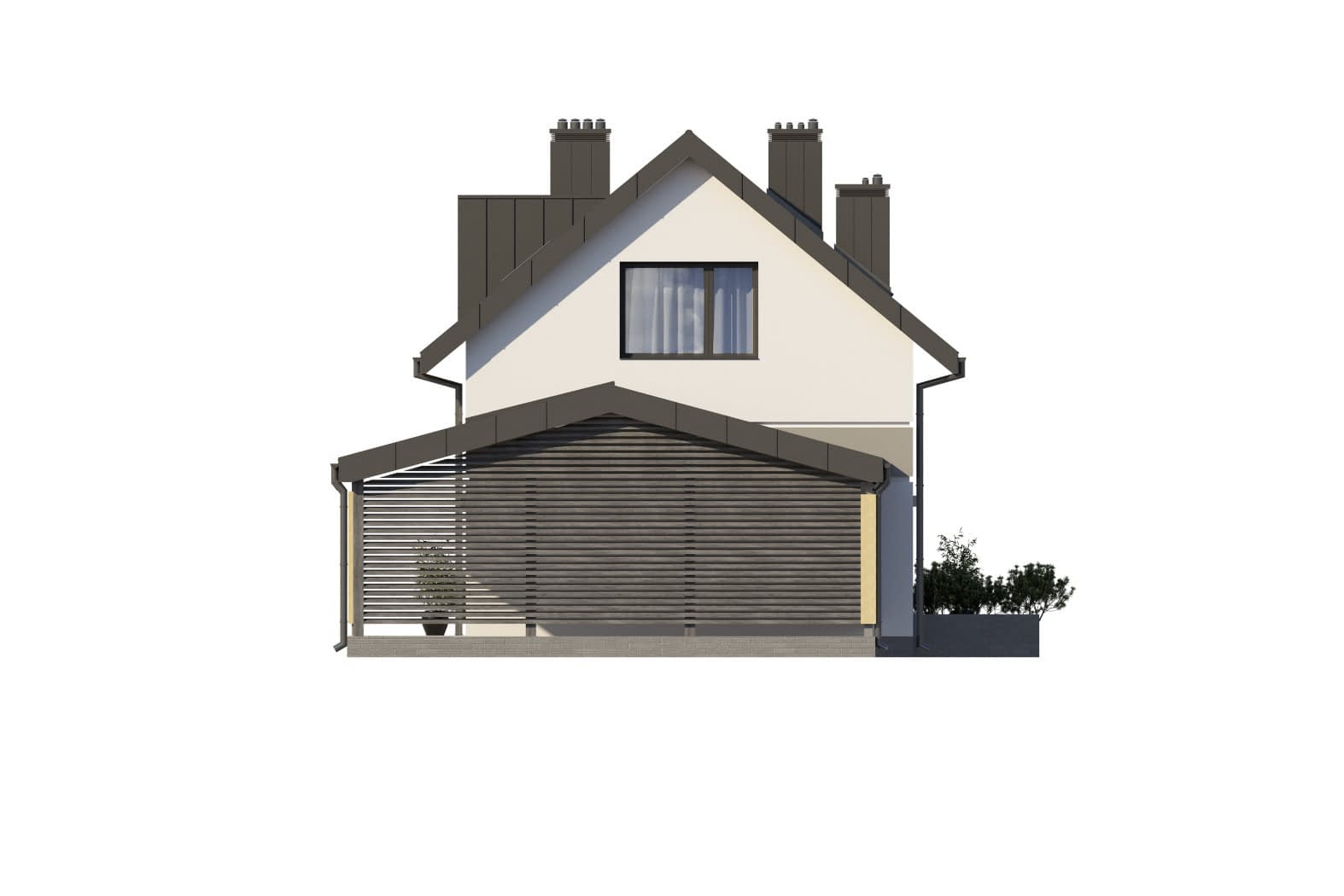 - elewacje (frontowa, dwie elewacje boczne, ogrodowa) – dokładny wygląd domu z każdej strony.