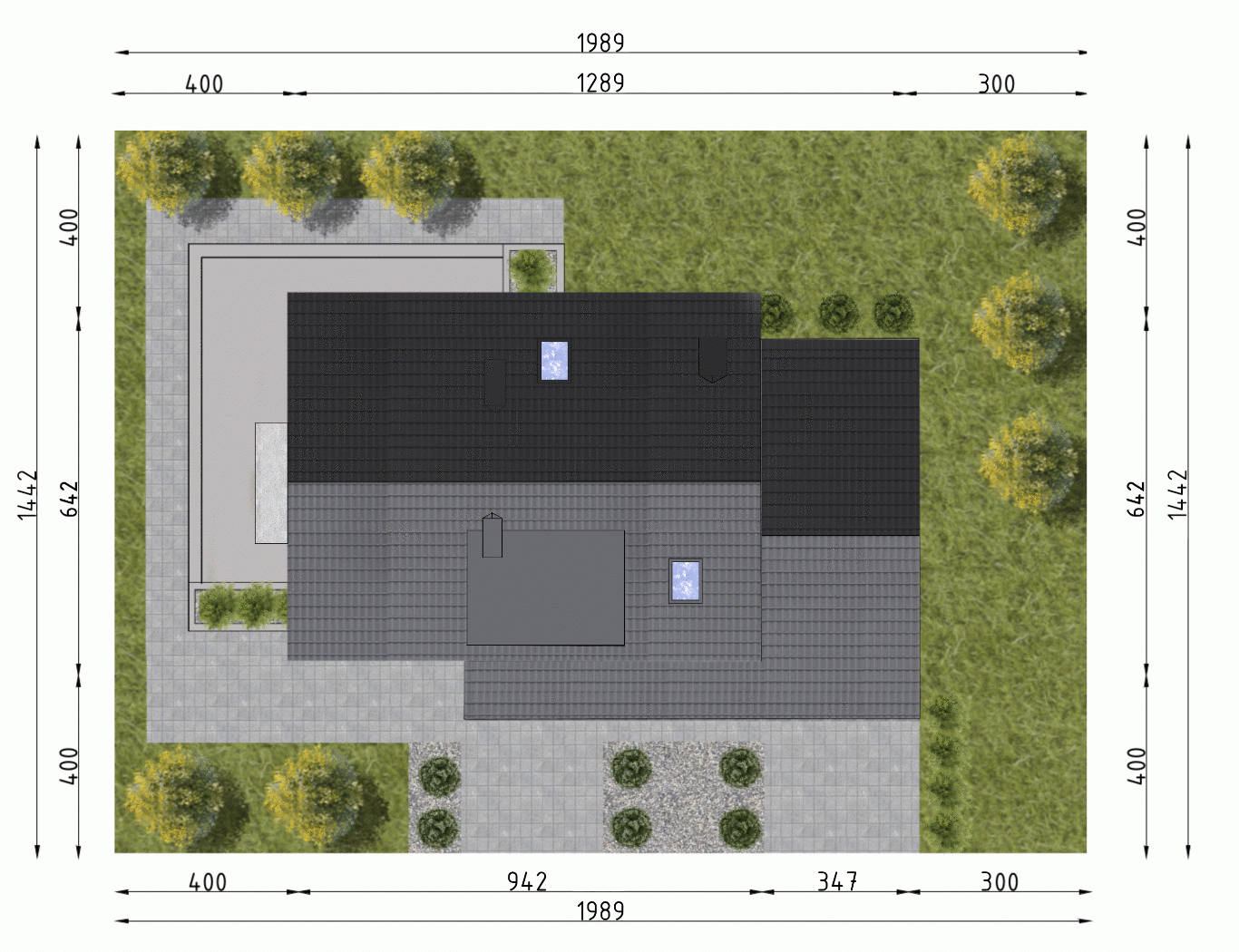 - Minimalne wymiary działki14.42 x 19.89m