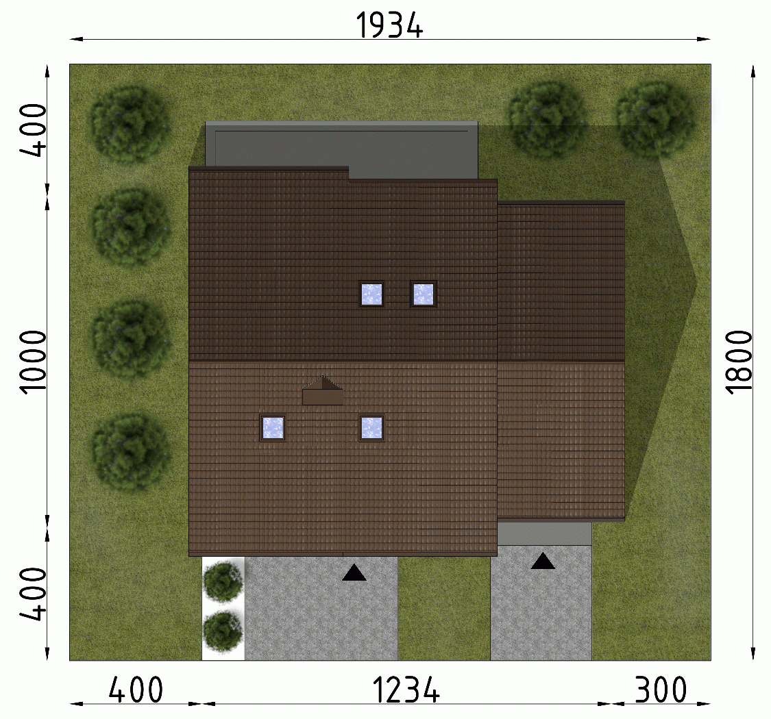 - rzut dachu – wymiary dachu, kąt nachylenia wszystkich połaci dachu, rozmieszczenie okien połaciowych, lukarn, kominów.