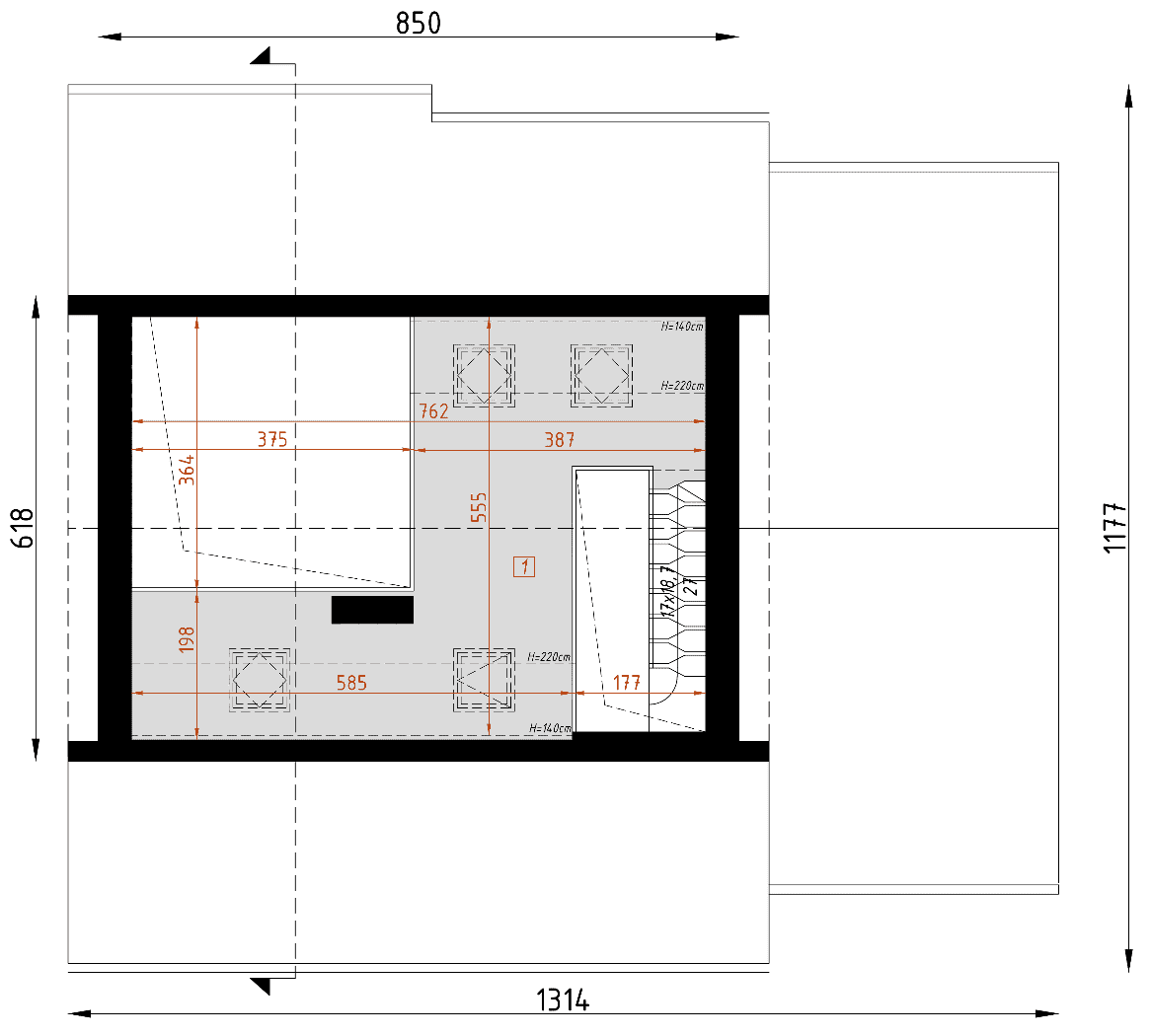 - rzuty wszystkich kondygnacji (np. parter, piwnica, piętro) – rozmieszczenie i wymiary wszystkich pomieszczeń, rozmieszczenie i wielkość otworów okiennych i drzwiowych, rozmieszczenie kominów, sugerowana aranżacja wnętrz.