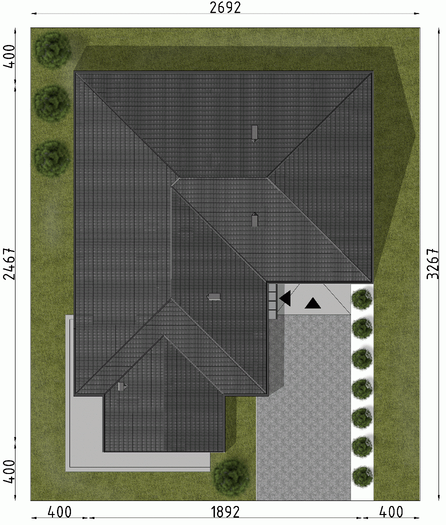 - elewacje (frontowa, dwie elewacje boczne, ogrodowa) – dokładny wygląd domu z każdej strony.