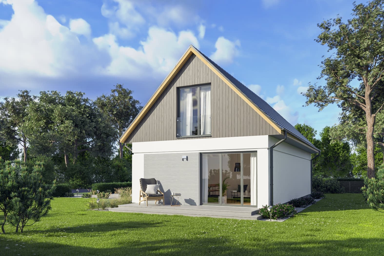 - elewacje (frontowa, dwie elewacje boczne, ogrodowa) – dokładny wygląd domu z każdej strony.