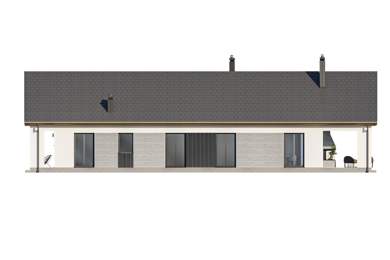 - elewacje (frontowa, dwie elewacje boczne, ogrodowa) – dokładny wygląd domu z każdej strony.