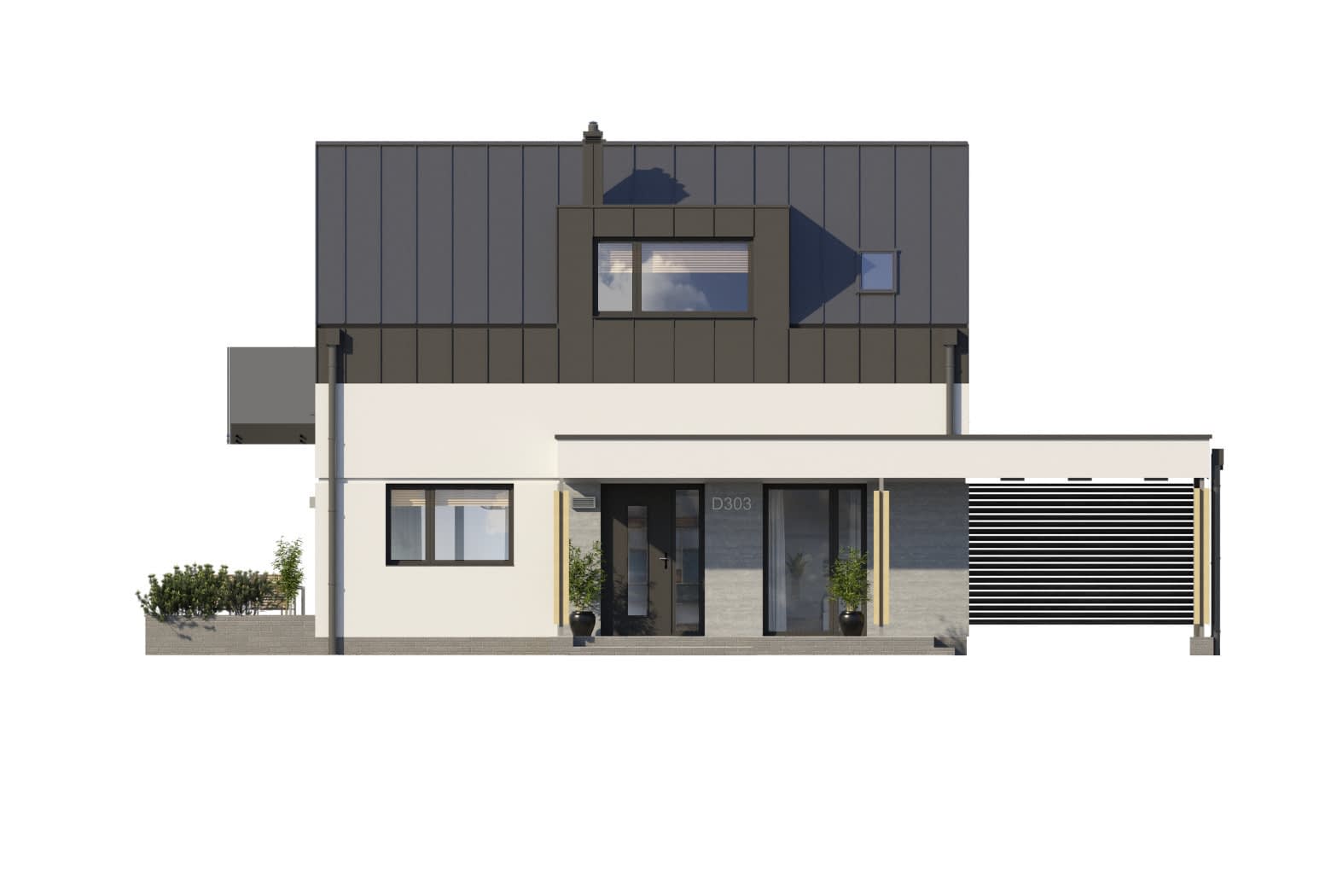 - elewacje (frontowa, dwie elewacje boczne, ogrodowa) – dokładny wygląd domu z każdej strony.