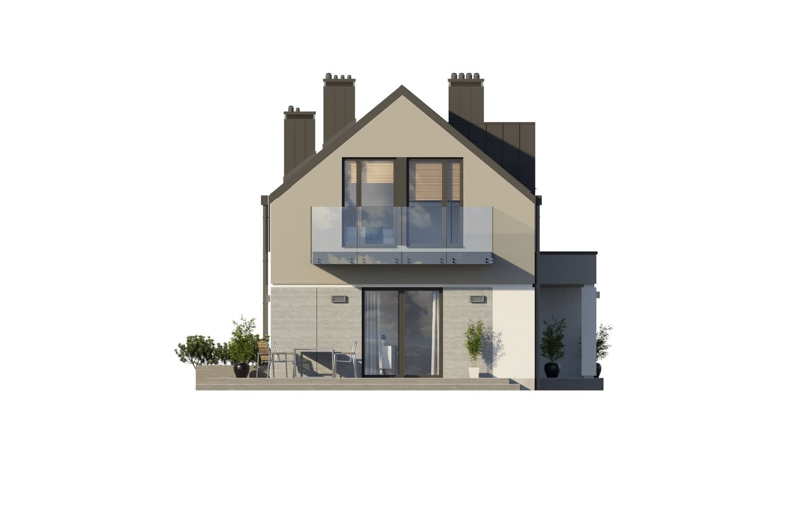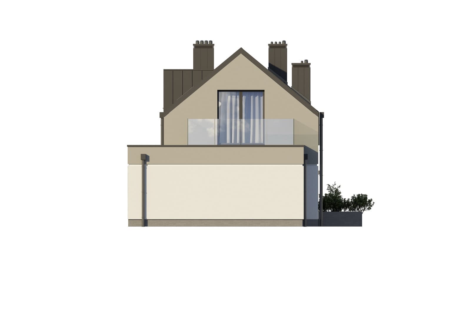 - elewacje (frontowa, dwie elewacje boczne, ogrodowa) – dokładny wygląd domu z każdej strony.