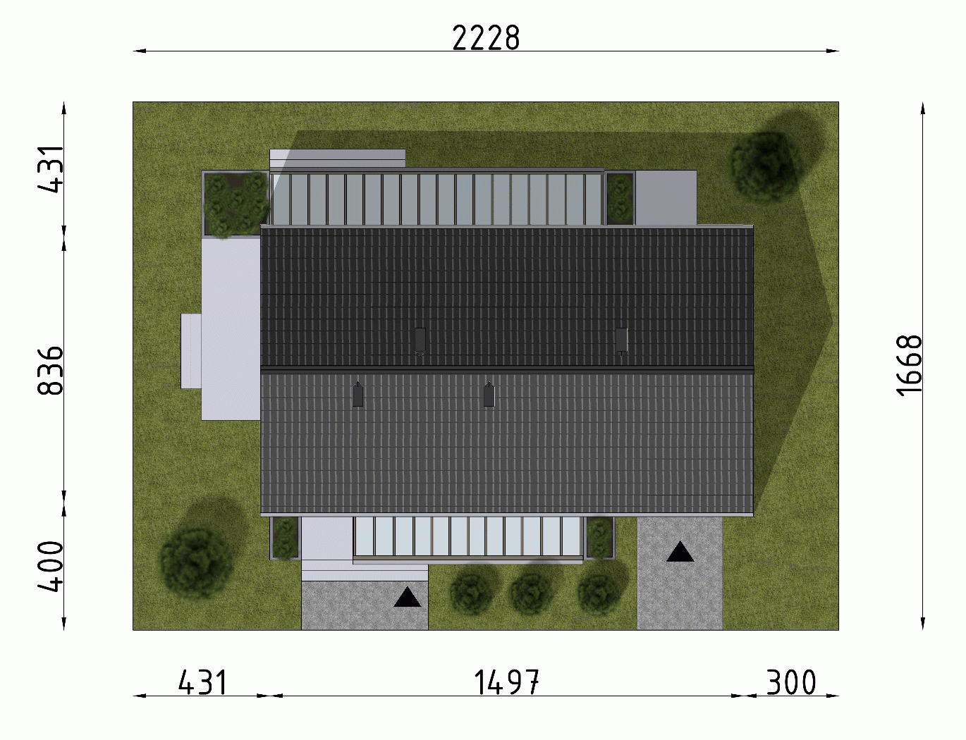 - elewacje (frontowa, dwie elewacje boczne, ogrodowa) – dokładny wygląd domu z każdej strony.
