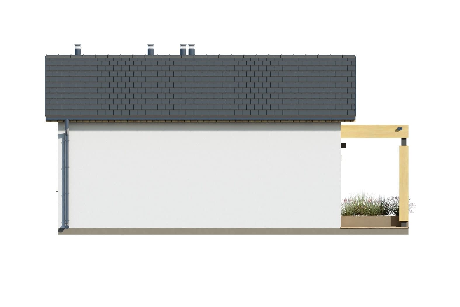 - elewacje (frontowa, dwie elewacje boczne, ogrodowa) – dokładny wygląd domu z każdej strony.