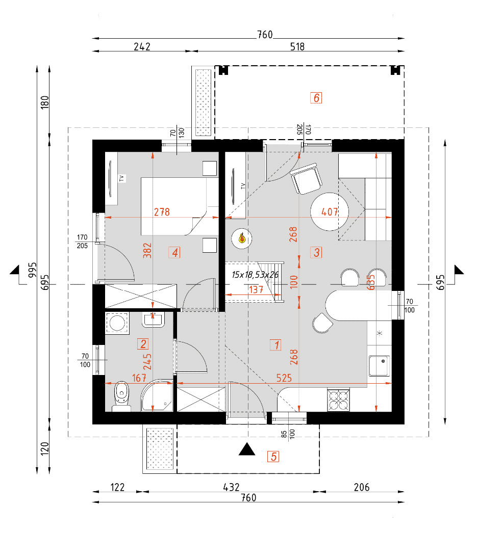 - Minimalne wymiary działki14.95 x 15.6m
