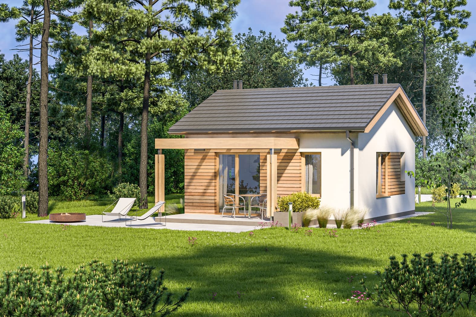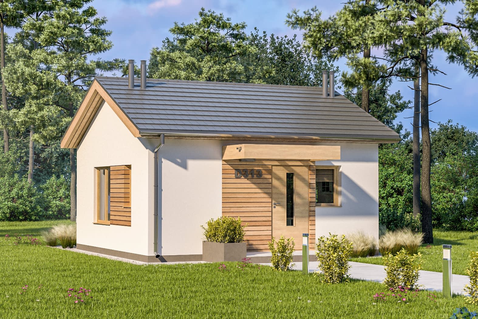 - elewacje (frontowa, dwie elewacje boczne, ogrodowa) – dokładny wygląd domu z każdej strony.