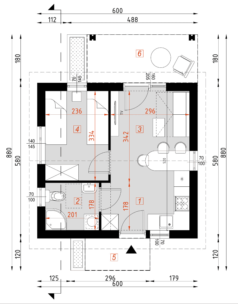 - rzuty wszystkich kondygnacji (np. parter, piwnica, piętro) – rozmieszczenie i wymiary wszystkich pomieszczeń, rozmieszczenie i wielkość otworów okiennych i drzwiowych, rozmieszczenie kominów, sugerowana aranżacja wnętrz.