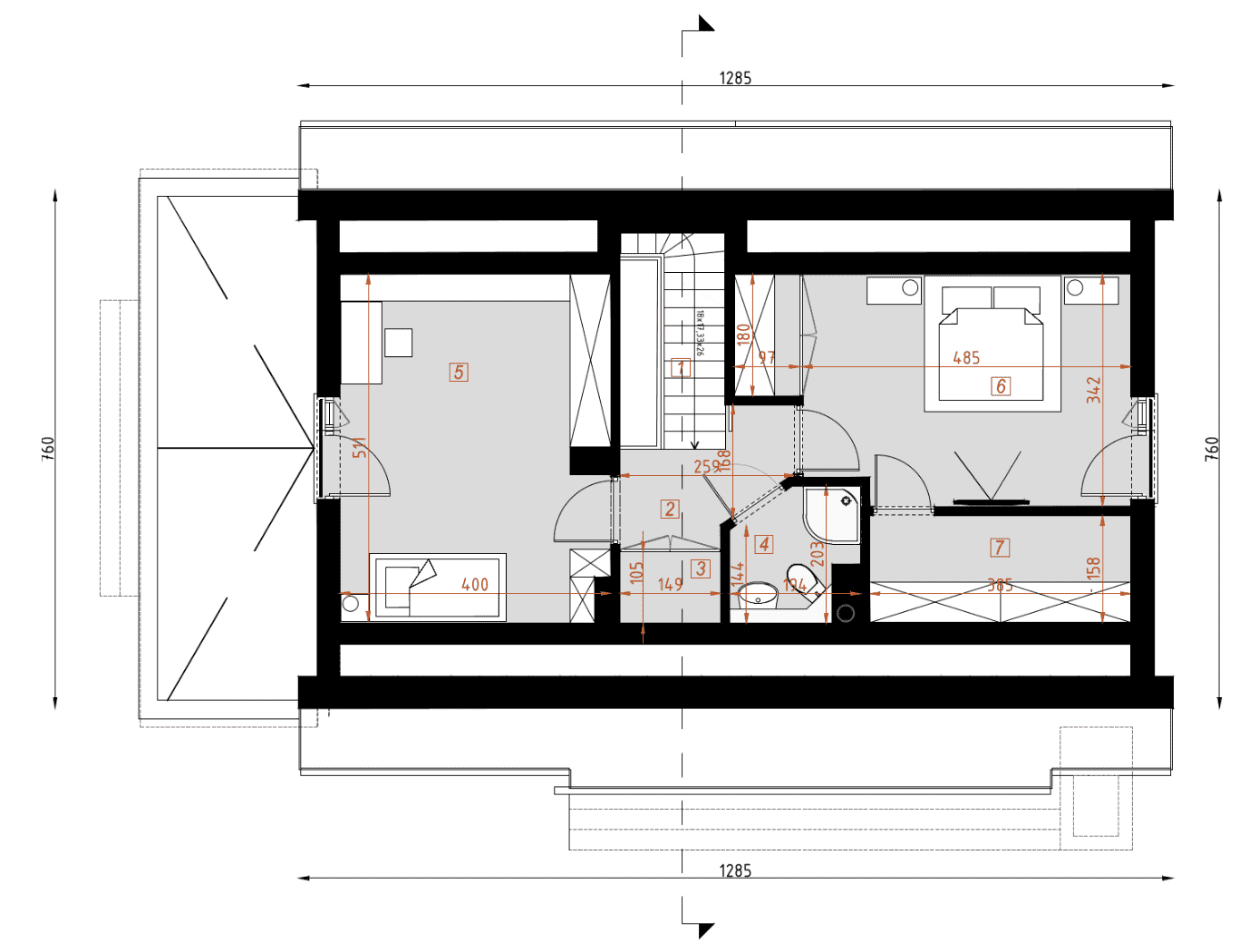 - rzut więźby dachowej – wymiary i rozmieszczenie elementów konstrukcji dachu.