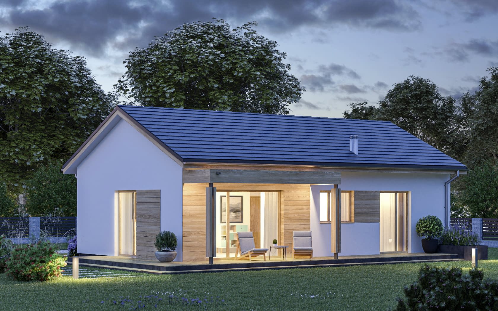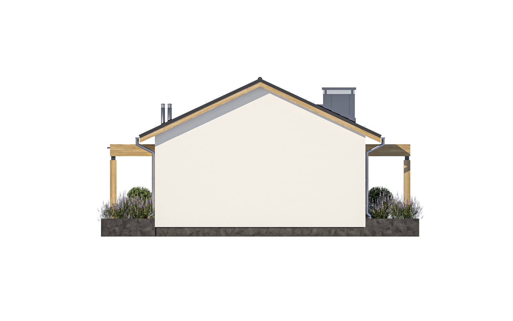 - elewacje (frontowa, dwie elewacje boczne, ogrodowa) – dokładny wygląd domu z każdej strony.