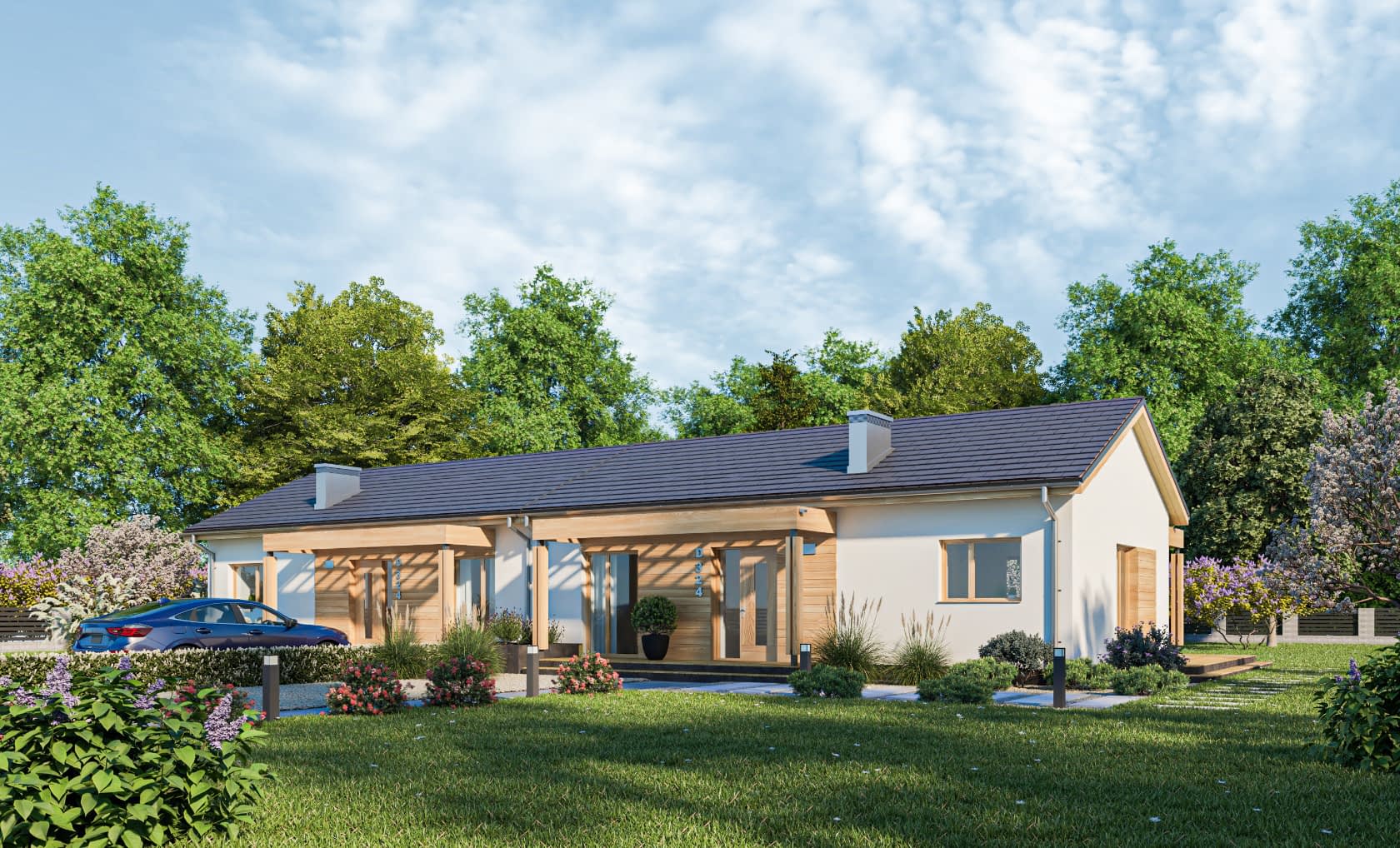 - elewacje (frontowa, dwie elewacje boczne, ogrodowa) – dokładny wygląd domu z każdej strony.