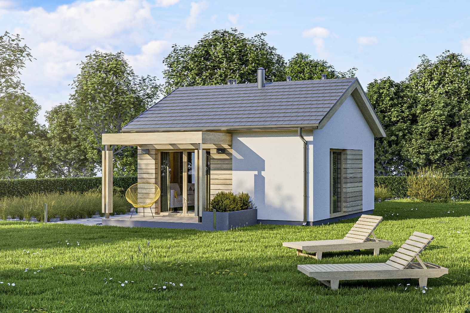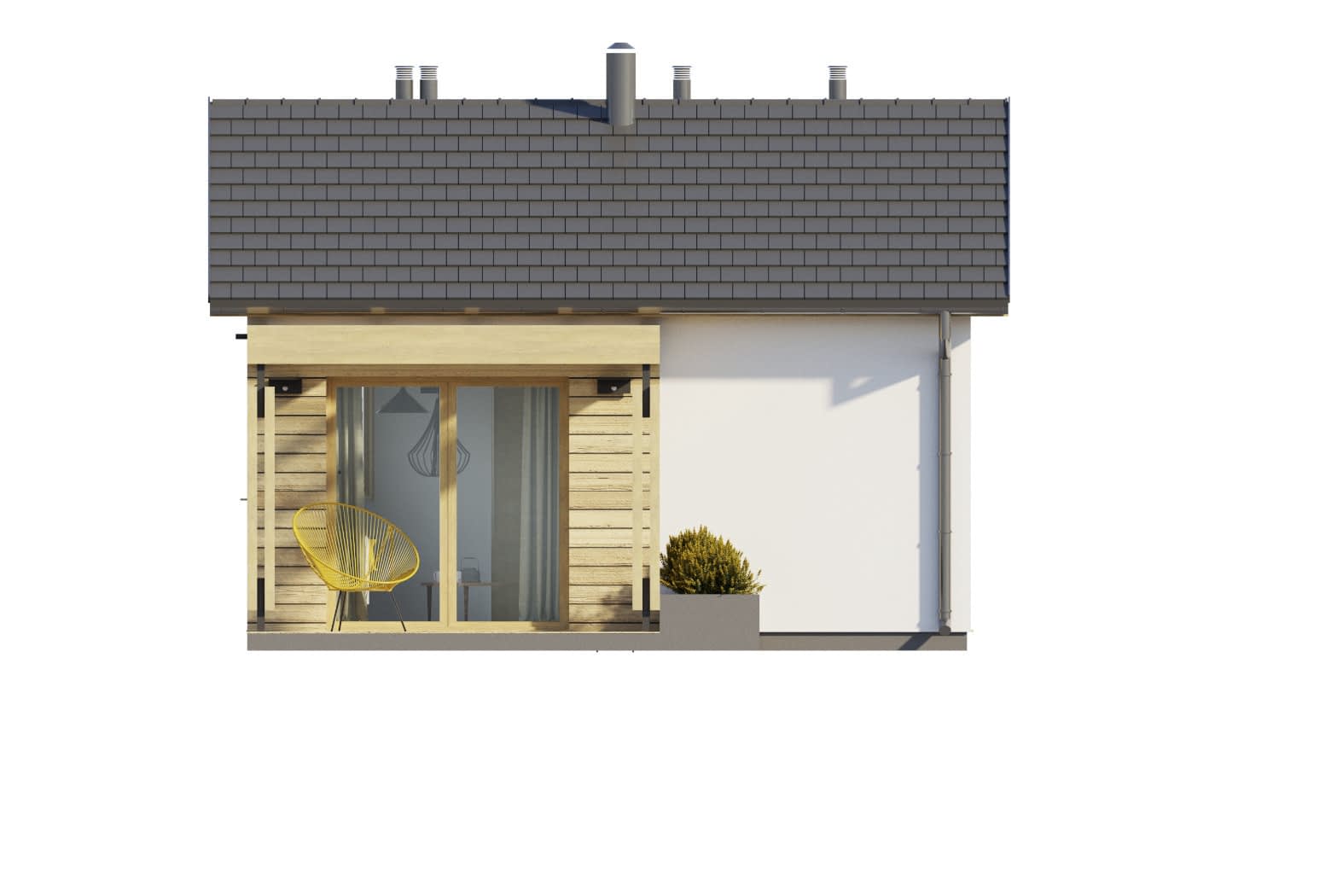 Elewacja: tynk cienkowarstwowy, drewno